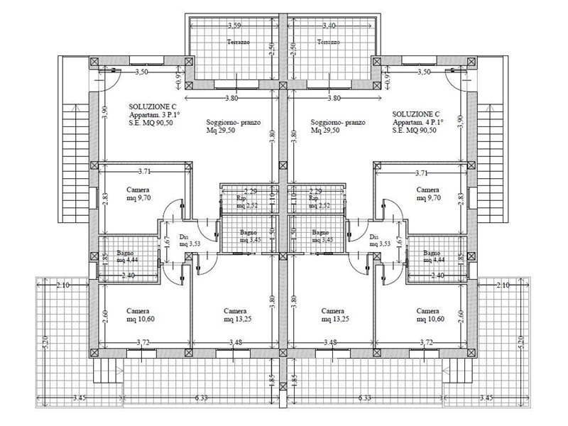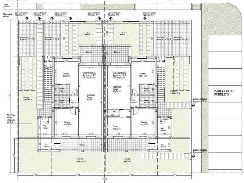 Cecina Marina: in contesto di nuova realizzazione, dove usufruire delle aree a verde, piste ciclabili e pedonali, parcheggi, il tutto secondo la concezione delle nuove e moderne lottizzazioni, si vendono appartamenti di 90 mq, in fabbricato QUADRIFAMILIARE. Gli ingressi sono indipendenti, da giardino esclusivo e ognuno ha n. 2 posti auto.  Gli interni si possono personalizzare a seconda delle esigenze, con zona giorno open space, oppure soggiorno e zona pranzo separata, oltre alla possibilità di avere 2 camere matrimoniali o 3 camere + doppi servizi e locale tecnico. Al piano terreno si accede da giardino e porticato sul fronte, con portico e altra porzione di giardino sul retro. Il piano primo ha la sua porzione di giardino, accesso da scala esterna, un terrazzo sulla zona pranzo e uno con accesso dalla camera. Le rifiniture sono di ottima qualità, gli impianti sono progettati con sistemi di ultima generazione, con riscaldamento a pavimento e impianto fotovoltaico.  Appartamenti suddivisi in 4 o 5 vani (con 2 matrimoniali o matrimoniale + 2 singole) - complessivi 90 mq al p. terra o primo.