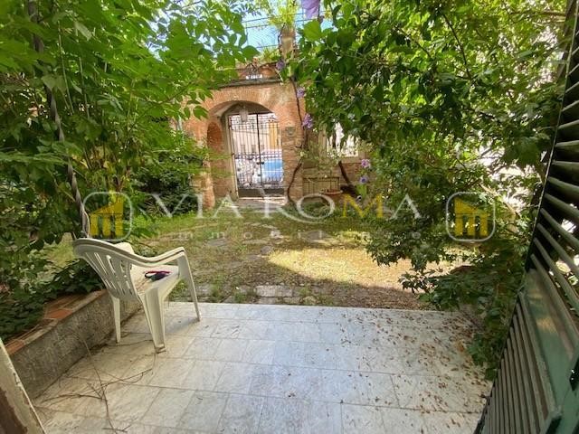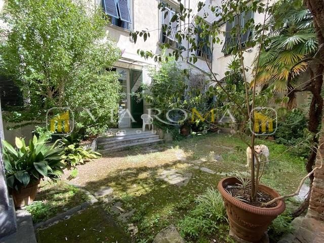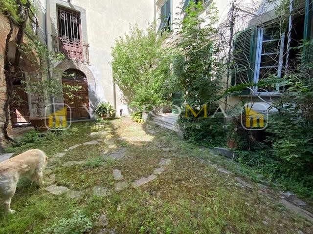 In una piazza importante di Lucca appartamento affascinante al piano terra di ampie dimensioni con soffitti a cassettone e pareti affrescate, corredato da giardino privato con posto auto e ampia taverna. Oggetto unico.