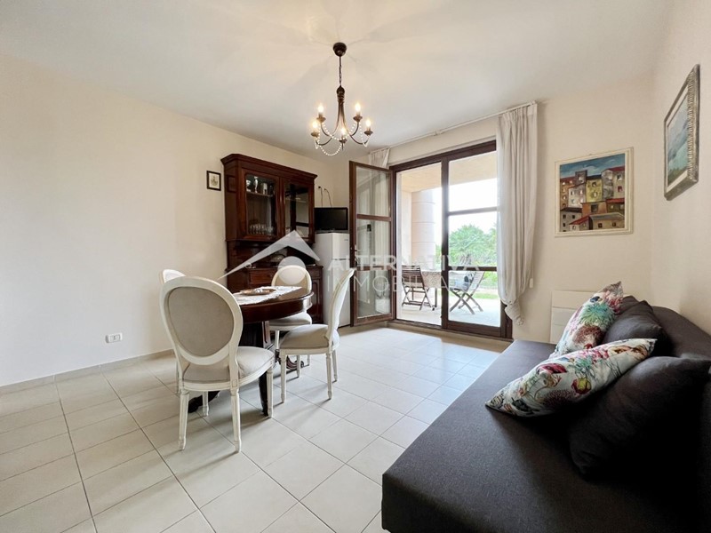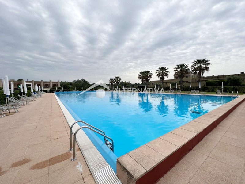 Tirrenia, immerso nella natura e in contesto residenziale, proponiamo bellissimo bilocale con piscina olimpionica condominiale e due campi da golf adiacenti. L'immobile è in perfette condizioni di manutenzione ed è così composto: ingresso tramite veranda esclusiva con affaccio alla piscina, soggiorno con angolo cottura, disimpegno con armadio a muro, bagno con box doccia, camera matrimoniale con accesso a giardino privato recintato.