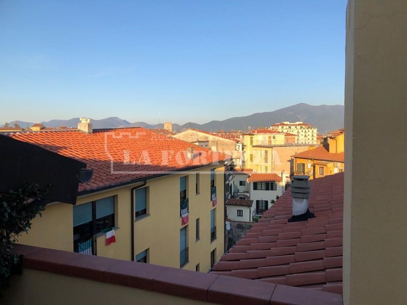 SAN MARTINO: in zona a traffico limitato, signorile appartamento con ottimi affacci al piano quarto ed ultimo di condominio servito da ascensore, internamente composto da salone triplo con ampio balcone, cucina abitabile, disimpegno notte, due camere matrimoniali e doppi servizi; da scala a vista in legno presente nella zona giorno è permesso l'accesso al piano superiore mansardato (avente anche ingresso indipendente), dove è ubicata la terza camera, lo studio, il bagno, uno spaziosissimo ripostiglio e due godibili terrazze abitabili, ognuna di circa 30 mq. A completamento della proprietà due posti auto scoperti in area condominiale.