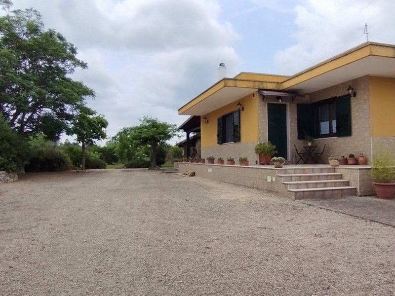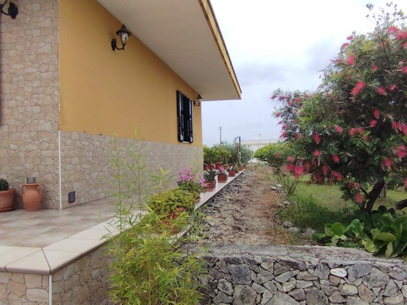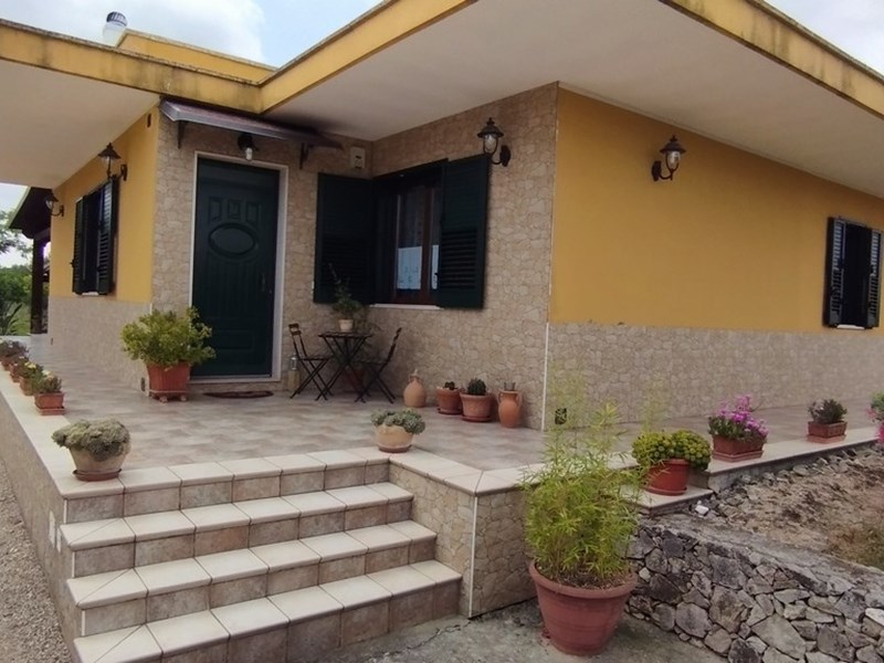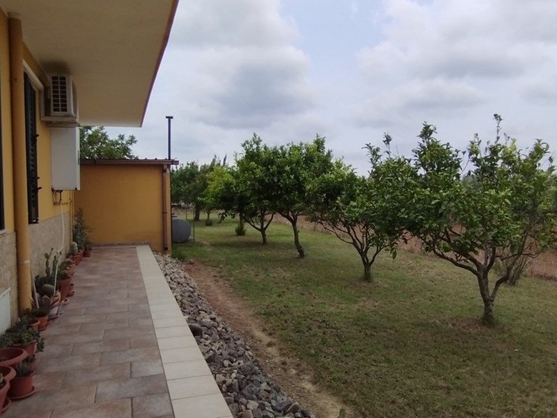 Vendita Villetta indipendente con giardino e terreno agricolo completamente recintata, su un unico livello con balcone retrostante abitabile, si compone di ingresso con soggiorno/pranzo Open Space, cucinino, lavanderia, tre camere da letto, due bagni uno con box doccia ed uno con vasca ad angolo. Posto auto retrostante, termo autonoma