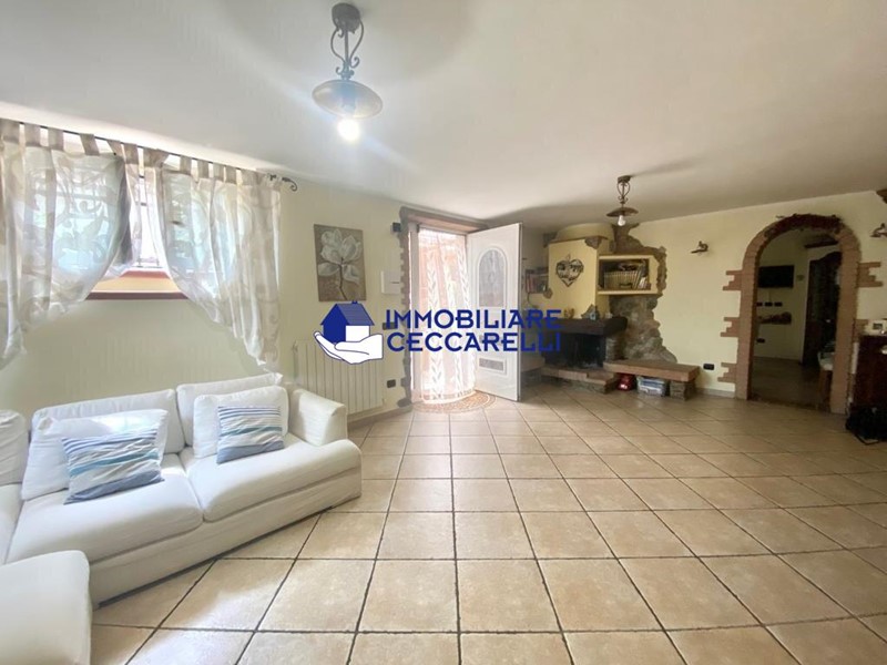 L'appartamento principale si sviluppa al piano primo ed ultimo, libero su quattro lati, e risulta composto da: ingresso ,  soggiorno con camino , cucina abitabile , bagno, servizio, tre camere e spaziosa terrazza vivibile.