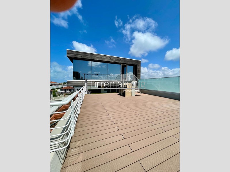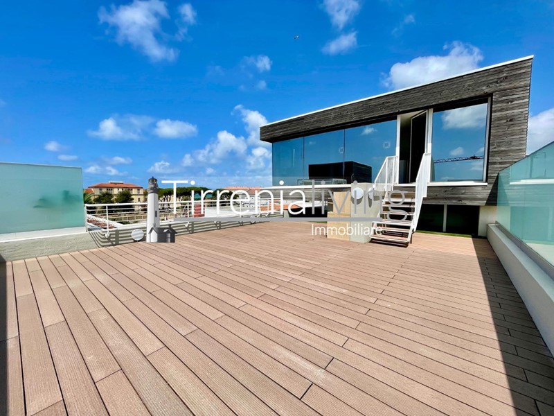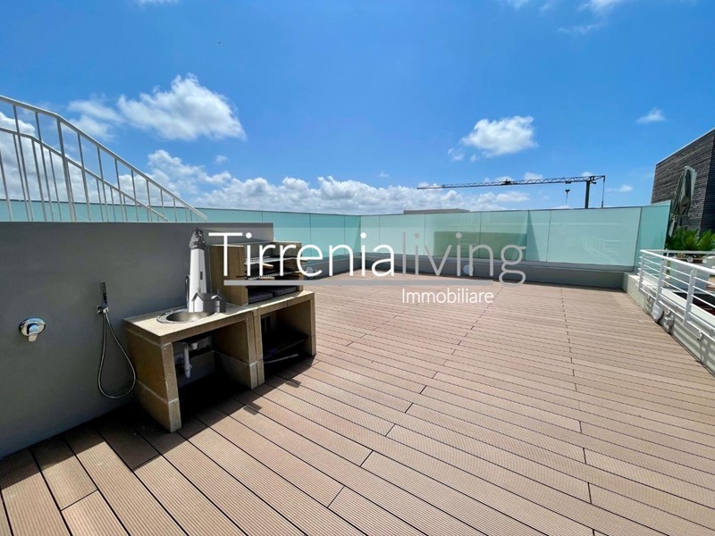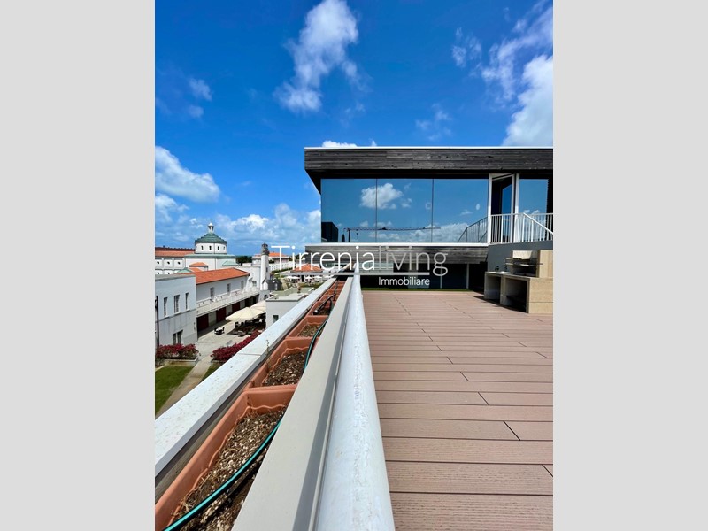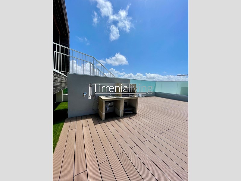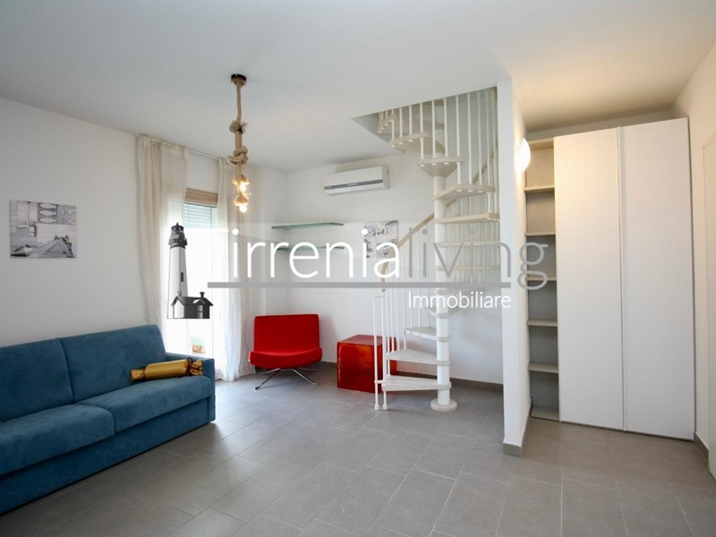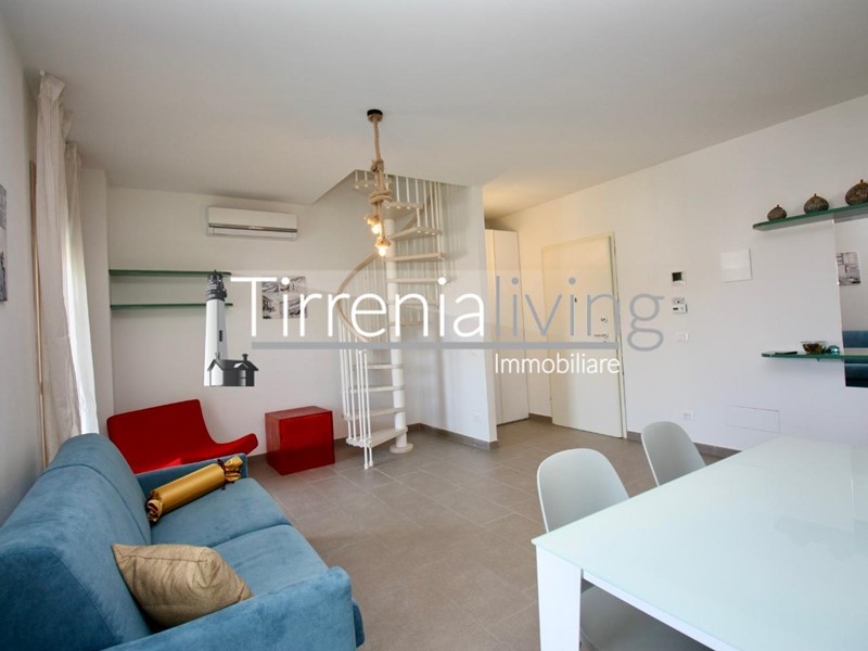 CALAMBRONE - In condominio di recente costruzione, prossimo al mare, proponiamo bellissimo appartamento posto al secondo ed ultimo piano servito da ascensore, così composto: ingresso in ampio soggiorno con angolo cottura e grande terrazzo,, disimpegno, bagno con doccia e finestra e camera matrimoniale. Dal soggiorno tramite scala a chiocciola, si accede al vano lanterna dove si trova un’ ampia zona living con bagno dotato di doccia. Esternamente bellissima terrazza giardino attrezzata per godere in ogni stagione una bellissima vista mare. L'offerta viene completata da un posto auto al piano seminterrato raggiungibile tramite ascensore condominiale. L'immobile viene venduto parzialmente arredato.