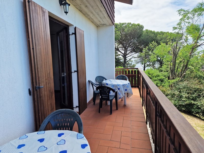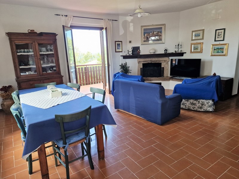 Al piano rialzato, ampio soggiorno con camino, angolo cottura in muratura, 2 camere, disimpegno, bagno e terrazzo vivibile con vista lago.