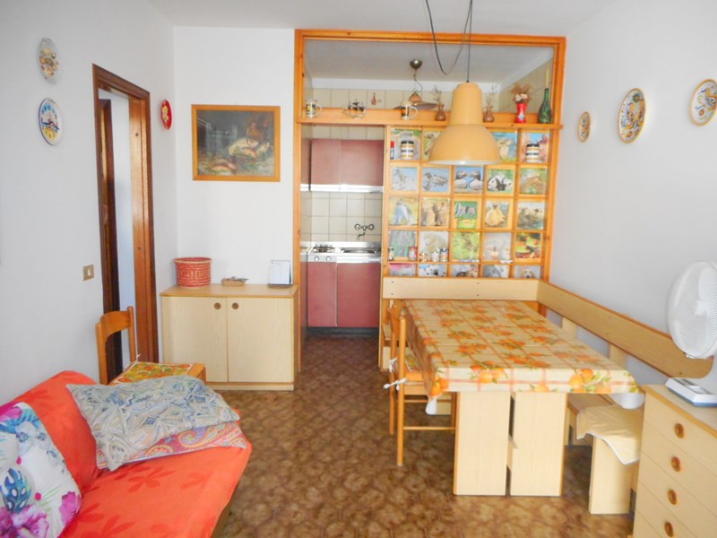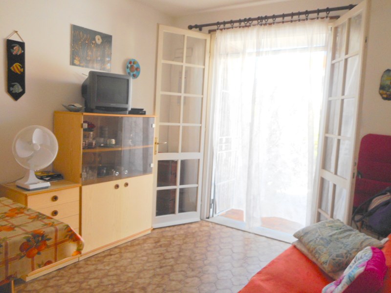L'immobile è composto da: soggiorno con cucinotto a vista, due camere letto, bagno, ampio porticato, ripostiglio, giardino con posto auto interno, arredata.