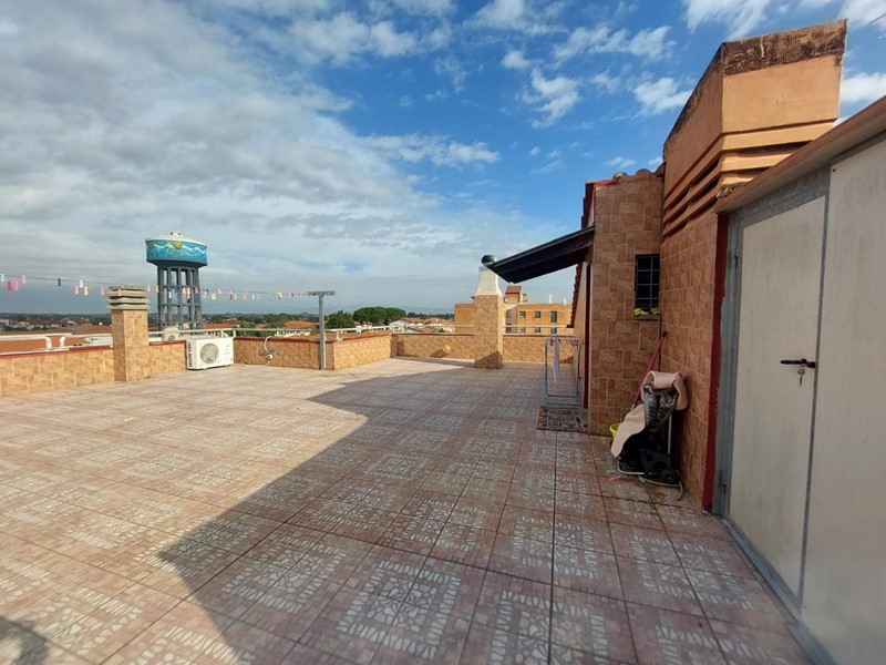 Dal soggiorno per mezzo di scala in cemento armato rivestita in legno si raggiunge un lastrico solare esclusivo di mq. 120 circa.