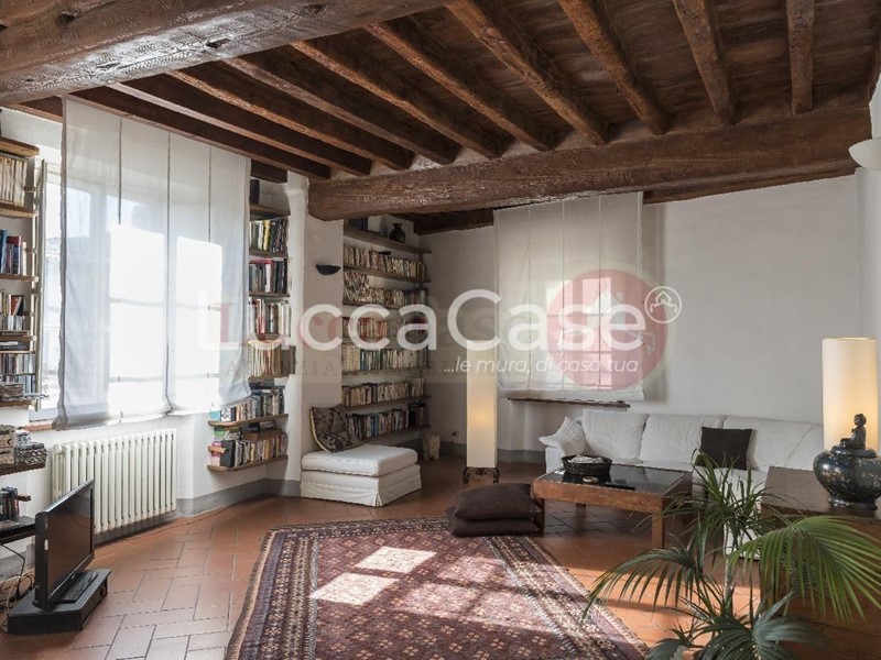 N054J CENTRO STORICO - LUCCA. Appartamento posto al terzo e ultimo piano, luminosissimo, molto bello ristrutturato con elementi molto antichi e di pregio, rispettando l'originalità della sua antichità. Arricchito di soffitto a cassettoni nel salone e da un focolare originale del 1500 nella grande cucina abitabile, l'immobile è composto da 3 camere matrimoniali, una doppia, 2 bagni, uno dei quali è nella camera padronale, cucina e un grande salone che gode di una vista suggestiva. Al piano superiore, servita da scala interna, abbiamo una piccola mansarda adibita in parte a salottino e in parte a lavanderia. Edificio di classe G, indice di prestazione energetica globale 218,00 kWh/m2 anno.