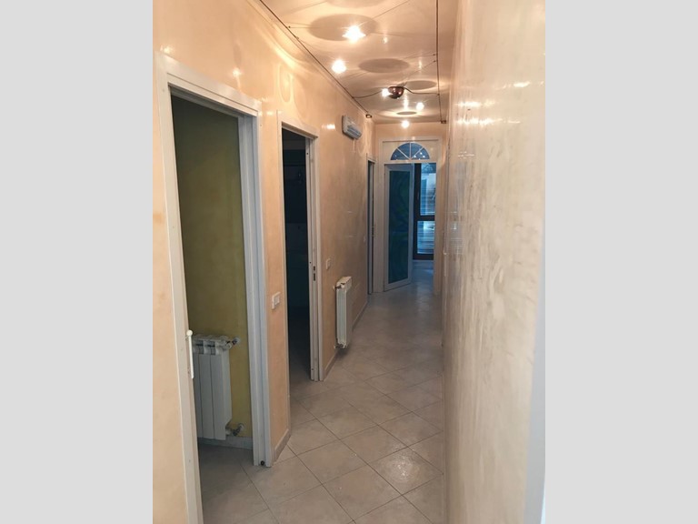 Appartamento adibito ad uso commerciale, della superficie di 100 mq. circa, posto al secondo piano di un più ampio edificio, con accesso, vano scala e ascensore a comune. Si compone di ingresso/reception, corridoio/disimpegno lungo il quale si affacciano quattro vani principali e due più piccoli, tutti finestrati, oltre a due bagni preceduti da antibagno. Zona centrale, molto frequentata, con ottime possibilità di parcheggio pubblico e un posto auto esclusivo sul retro dell'edificio. Può anche essere riconvertito ad uso abitativo effettuando il cambio di destinazione.