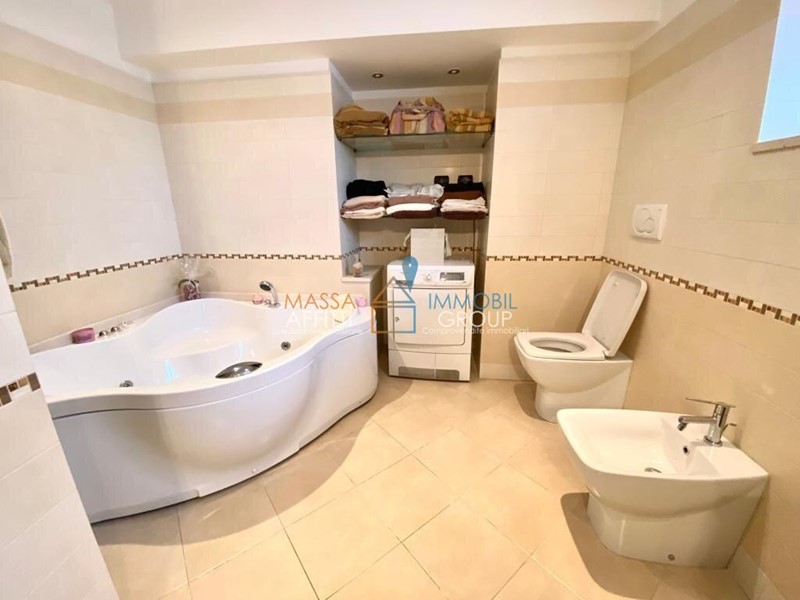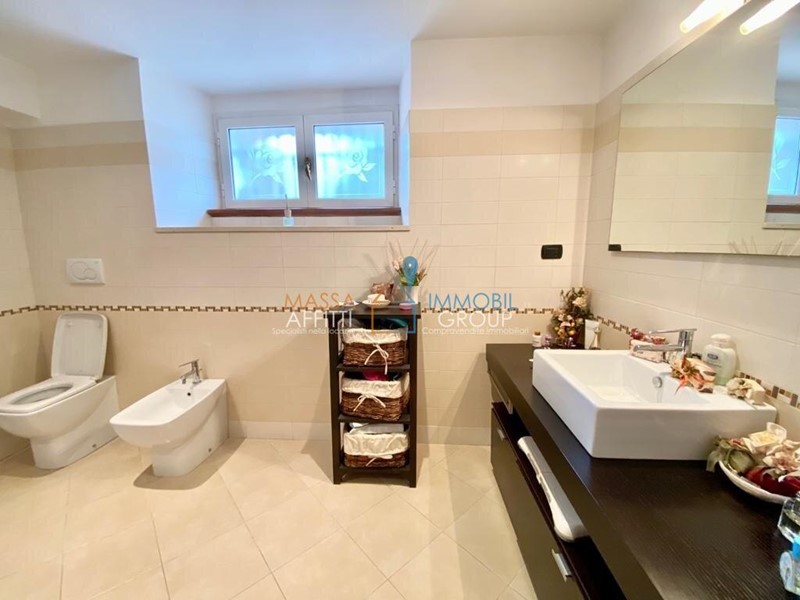 Massa, Porzione di Bifamiliare situata al Primo ed Ultimo Piano, composta da: Ingresso, Ampio Soggiorno con camino, Cucina abitabile, Tra Bagni finestrati ed uno di servizio, tre Camere e ampia terrazza Pranzabile.  Al piano seminterrato, con ingresso autonomo, Ampia Taverna con ottime Rifiniture.