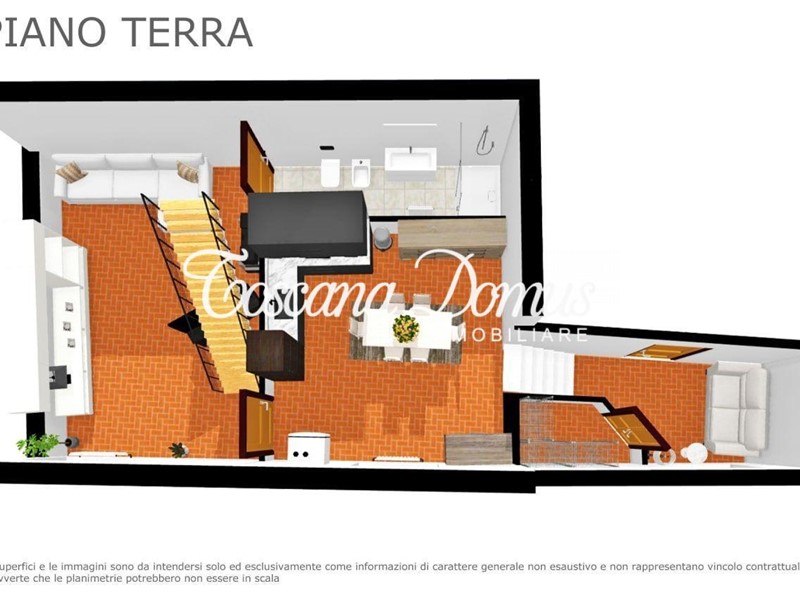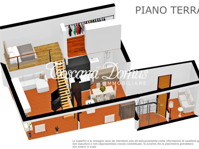 L''immobile si sviluppa al primo piano da piccolo studio , piano rialzato cucina grande, salotto , camera matrimoniale soppalcata con cabina armadio . Bagno.