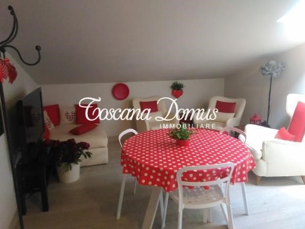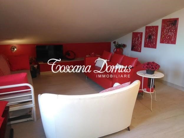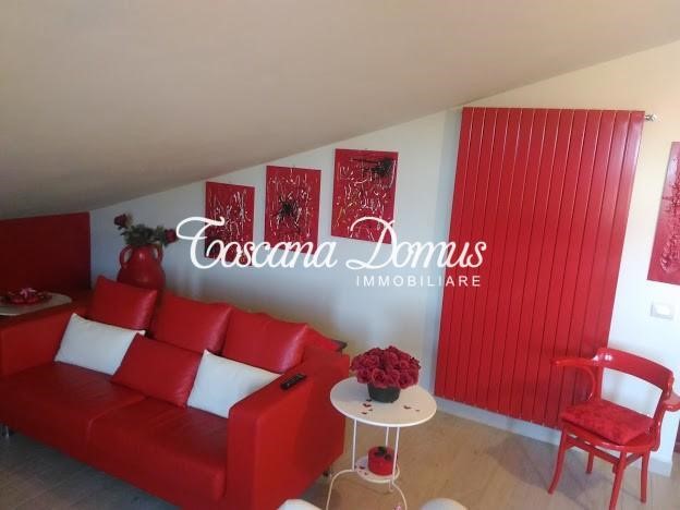 Composto da una grande sala , cucina abitabile con accesso al terrazzo da dove poter ammirare il paesaggio di siena, camera matrimoniale con bagno privato e cabina armadio. Comoda lavanderia e secondo bagno.