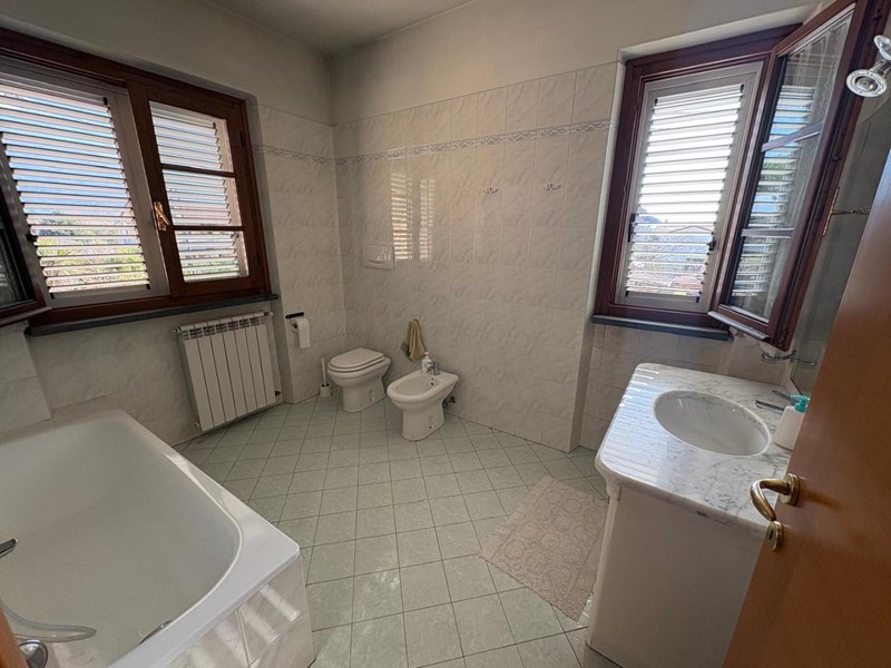 Cinquale. Si vende appartamento in ottimo condizioni e di grandi dimensioni (150 mq oltre a sottotetto e terrazza pranzabile) posto al primo piano e a solo 1 Km dal mare. Corredato di corte piastrellata al piano terra di circa 100 mq per due posti auto. Internamente risulta composto da ampio ingresso con scala di accesso al piano sottotetto, cucina abitabile, grande soggiorno con terrazza, disimpegno, tre camere matrimoniali e due bagni a piano primo; Ampio locale mansardato a piano sottotetto. Terrazza pranzabile di circa 35 mq. Classe energetica F – IPE 149,56 kwh/mq anno.