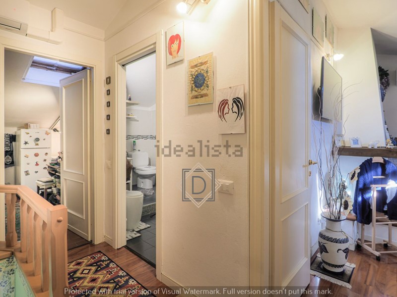 Dispone di un'interessante metratura (circa 120 mq) che prevede ingresso in ampio soggiorno (con balcone), camera matrimoniale con balcone, bagno e cucina abitabile. Il piano primo accessibile con scala a chiocciola (in parte mansardato con buone altezze abitative) dispone di altre due camere matrimoniali e uno studio, oltre a un secondo bagno che serve la zona notte.