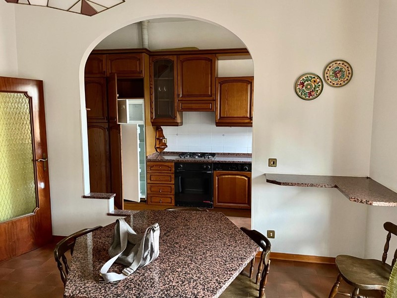 Appartamento 120 mq in zona residenziale. In buone condizioni generali, molto spazioso e luminoso. Composto da ampio ingresso, cucina abitabile con cucinotto, grande soggiorno, due camere matrimoniali, una doppia, ripostiglio bagno e due terrazzi. Al piano terreno, ampio garage con attiguo magazzino e taverna con bagno. Dispone inoltre di resede esterno privato lastricato. Tutti gli impianti sono funzionanti ed autonomi. Infissi esterni nuovi.
