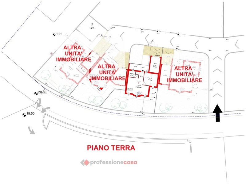 La costruzione partirà dal lotto C/2 dove si prevedono 4 terra-tetto.