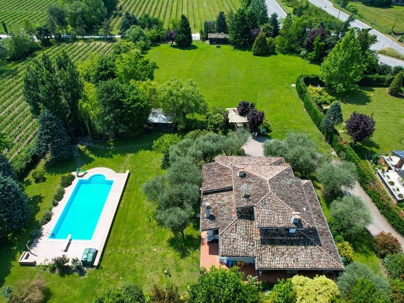 Immersa tra i vigneti di Sirmione e il lungolago raggiungibile in 5 min, proponiamo villa singola in lotto di 3.000 mq con laghetto e piscina privata.
