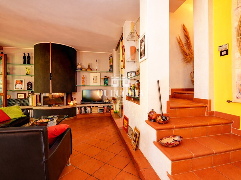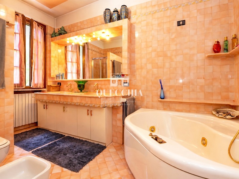 - piano terra: spaziosa e luminosa zona giorno con cucina separata, con accesso al portico di 50 mq affacciato sul parco, due comode camere matrimoniali, uno studio e due bagni;
