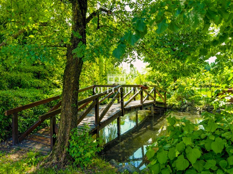 Circonda l'abitazione un parco dotato di un prestigioso laghetto e piscina privata.