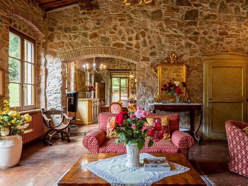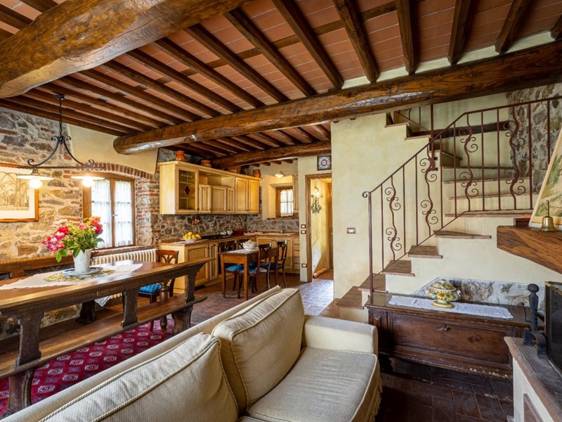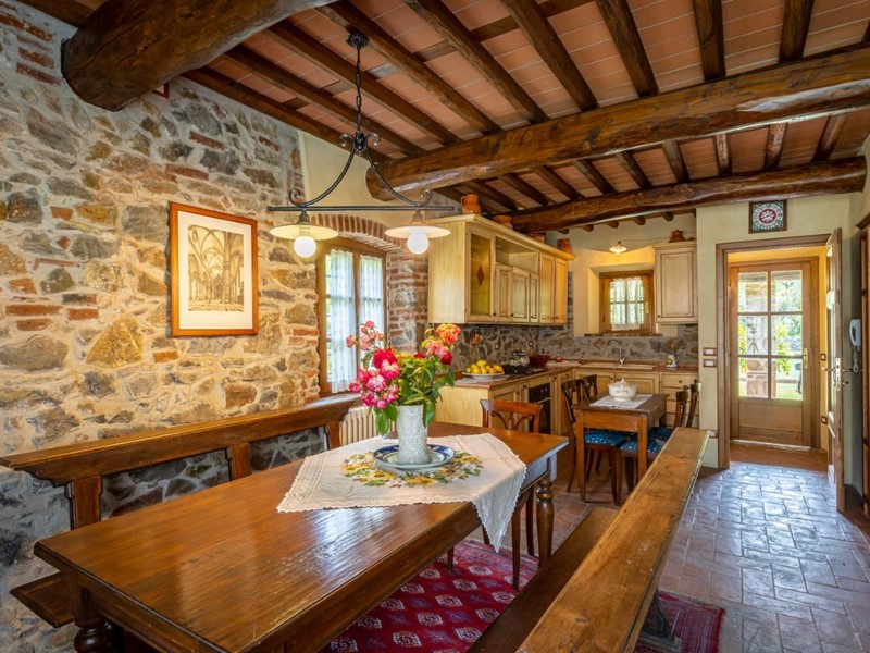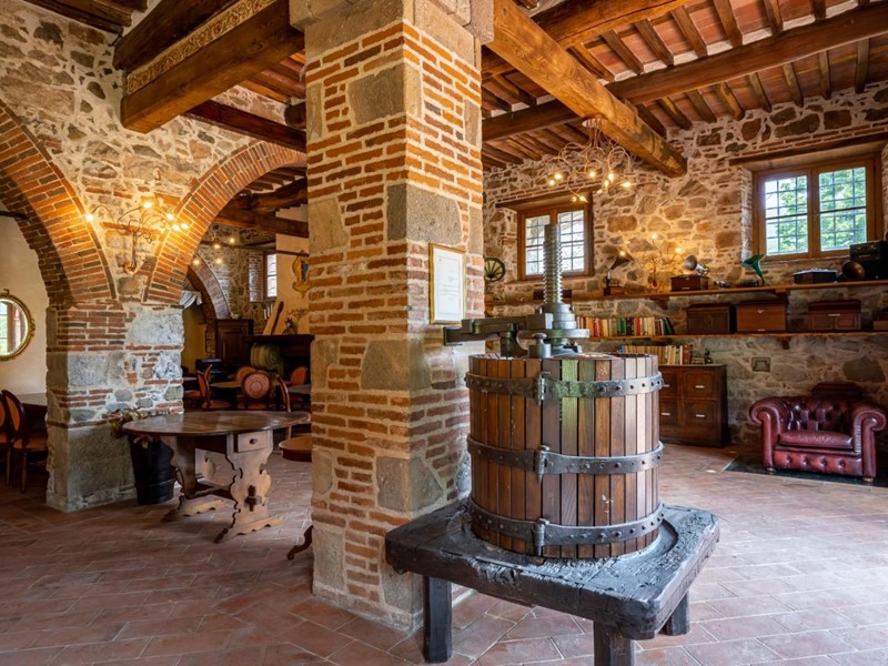 La proprietà si presenta in eccellente stato di manutenzione e conservazione, il recupero dello stabile a riportato a vista la pietra utilizzata nella costruzione, il grande parco contornato da alberi ornamentali con antichi orci in terracotta donano eleganza alle dolci balze che lo caratterizzano, esternamente completa la proprietà una piscina un campo da tennis in erba e una polla di acqua sorgiva ideale per irrigare il terreno.