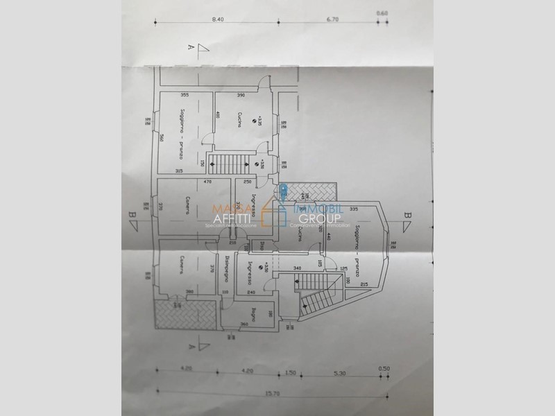 Semidipendente al Piano Primo. Ingresso su Ampio Disimpegno, Cucina Abitabile con Terrazzo, Salone, 2 Camere Matrimoniali, di cui una con Terrazzo, Cameretta, Bagno con Finestra. Mansarda/Ripostiglio. Al Piano Terra 2 Ampie Cantine, Parcheggio con Tettoia per 5 Auto, Cortile Privato. Sempre Al PIano Terra, Compreso nel Prezzo Indicato, Ampio Fondo Commerciale con Magazzino e Bagno.