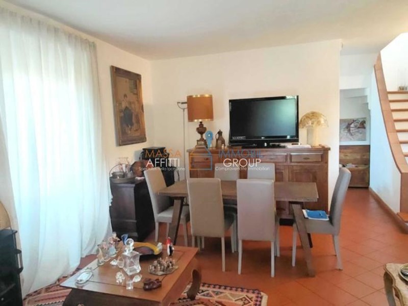 Montignoso, in zona tranquilla, Porzione di Bifamiliare disposta su due livelli; A piano terra: ingresso, soggiorno, cucina abitabile, cameretta e bagno finestrato. Al piano superiore, accessibile tramite comoda scala: disimpegno, due camere matrimoniali, studio e bagno finestrato. A corredo balcone, giardino esclusivo di circa 140 mq e due posti auto. L'immobile risulta in ottimo stato di manutenzione accessoriato di impianto fotovoltaico, impianto solare, cappotto termico e infissi nuovi.