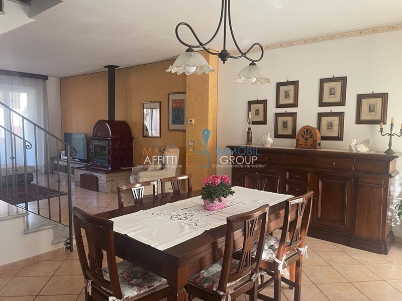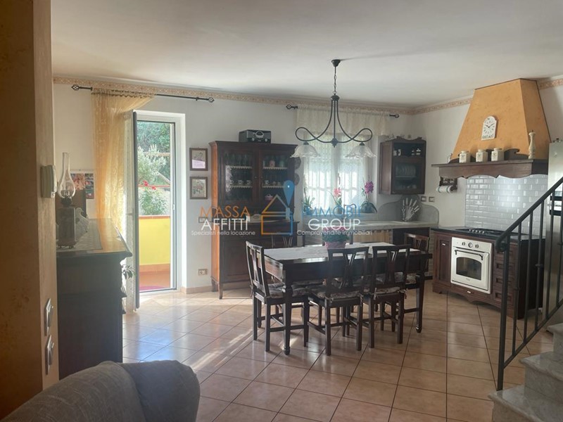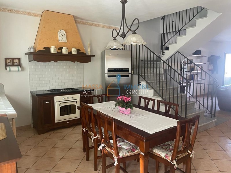 Bonascola (Carrara). Villetta a Schiera. Ingresso al Piano Rialzato con Terrazzino, Ampio Salone con Termo Camino e Angolo Cottura Open Space dal Quale sia Accede a Piccolo Giardino sul Retro della Casa. Al Piano Primo Una Camera Matrimoniale, 2 Camere Singole con Terrazzo e Bagno. Al Piano Secondo Mansarda Open Space con Ripostiglio. Al Piano Semi Interrato Tavernetta con Lavanderia e Bagno e Ampio Garage Per Auto con Parcheggio Esterno. Non vi sono Spese Condominiali: Libera su 2 lati Paralleli, Sopra e Sotto.