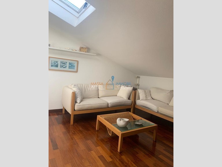 Forte dei Marmi, porzione di bifamiliare a piano rialzato e disposta su tre livelli. A piano rialzato troviamo: ingresso, sala, cucina abitabile, bagno al piano terra; Al primo piano: camera matrimoniale, camera doppia e bagno con vasca; Al piano mansardato: due camere e bagno. A corredo: ampio giardino.