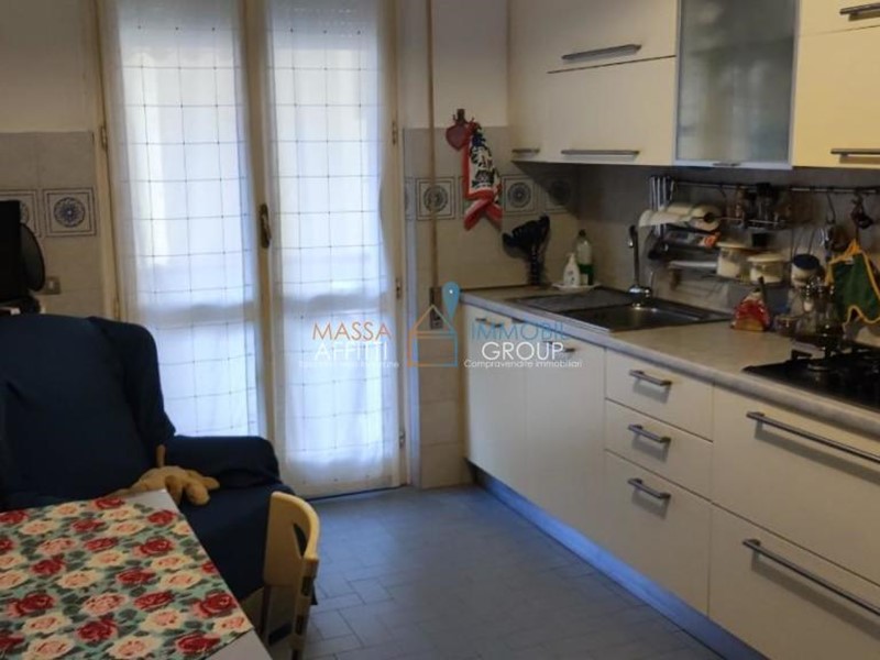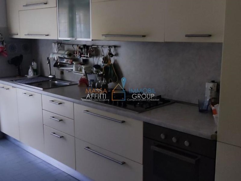 Massa, posizione centrale, Appartamento posto al quarto ed ultimo piano di un condominio signorile dotato di ascensore; si compone di: ingresso, cucina abitabile con balcone, ampia sala con terrazza, 2 camere più che matrimoniali, bagno principale già ammodernato con vasca e doccia e altro servizio. Completano la proprietà cantina, garage e parcheggio in area condominiale. Possibilità di scorporare il garage.