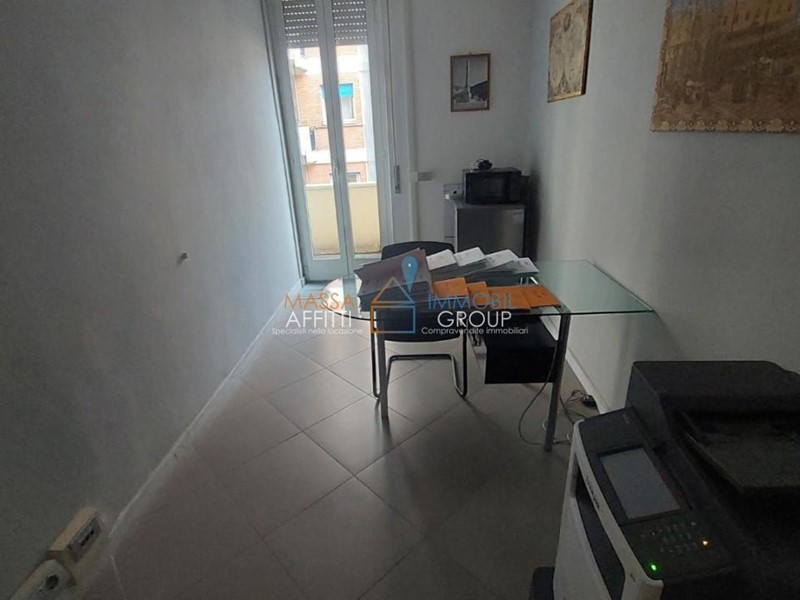 Massa, in posizione Centrale, Appartamento posto al Primo Piano di un condominio dotato di Ascensore e composto da: Ingresso su Disimpegno, Cucina abitabile, Soggiorno, Due Camere Matrimoniali, una Camera doppia, una Camera Singola, Bagno finestrato con doccia, Ripostiglio e Balcone. L'immobile, attualmente adibito ad ufficio è in ottimo stato di manutenzione.