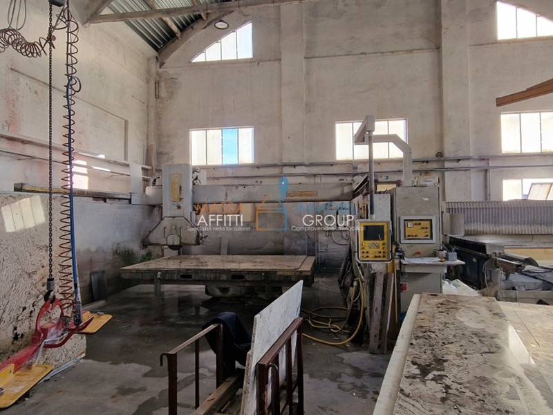 Capannone di 375mq e 150mq di uffici. Altezza interna di 8mt. Piazzale esterno di 3000mq. Zona adatta al passaggio di veicoli pesanti. Possibilità di mantenere l'attuale dotazione di macchinari.