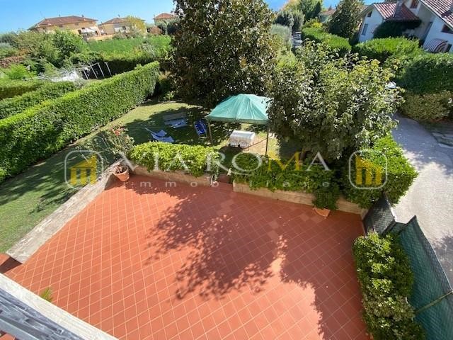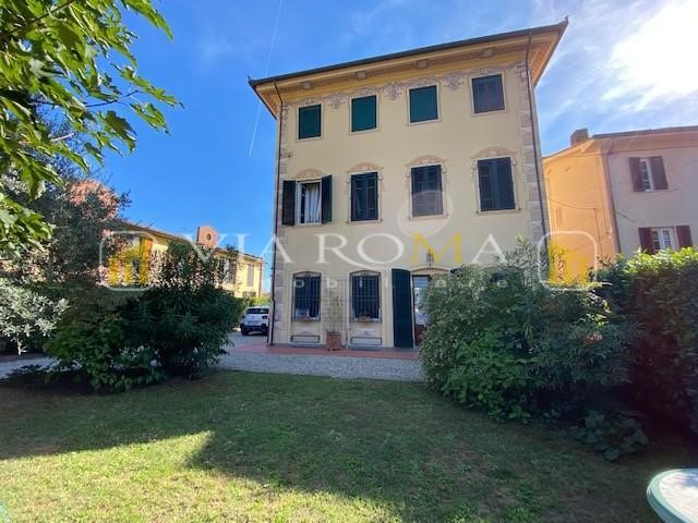 Villa primi novecento, completamente ristrutturata esternamente e internamente, mantenendo le caratteristiche dell'epoca, con il rifacimento delle pitture originali della facciata esterna. Disposta su tre livelli, la casa si presta all'utilizzo anche di tre nuclei familiari. Corredata da ampio giardino con aia e viale con 4 posti auto, ampia cantina uso ripostiglio di circa 50 mq. Al piano terra sala di ingresso, cucina tinello con caminetto, bagno e due camere, al primo piano quattro ampie camere un balcone e bagno, al secondo piano altre quattro vani, balcone e bagno. Ampia soffitta uso ripostiglio. Perfette condizioni di manutenzione, posizionata in zona residenziale e con affacci panoramici.