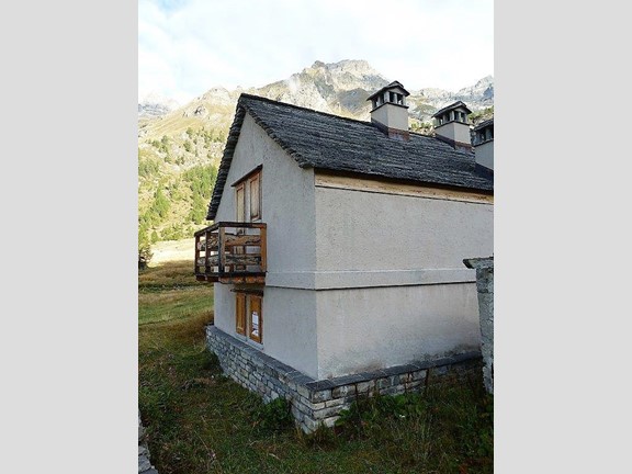 Completa negli esterni con l'ampio tetto in "piode" locali ne è rimasto al rustico l'interno: su due livelli comprende la zona giorno con il bagno al pian terreno, disimpegno e, con scala interna centrale, due camere al piano primo sottotetto, per complessivi 110 mq. utili. I completamenti interni possono essere realizzati secondo le esigenze personali, anche con l'ampliamento di alcune aperture, particolarmente sul fronte a giorno. Le reti dei servizi sono a breve distanza.
