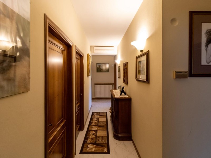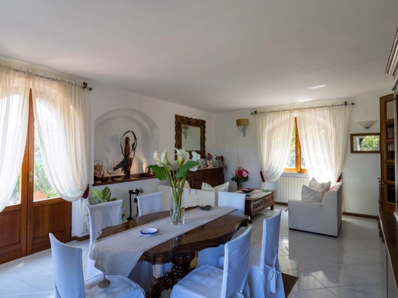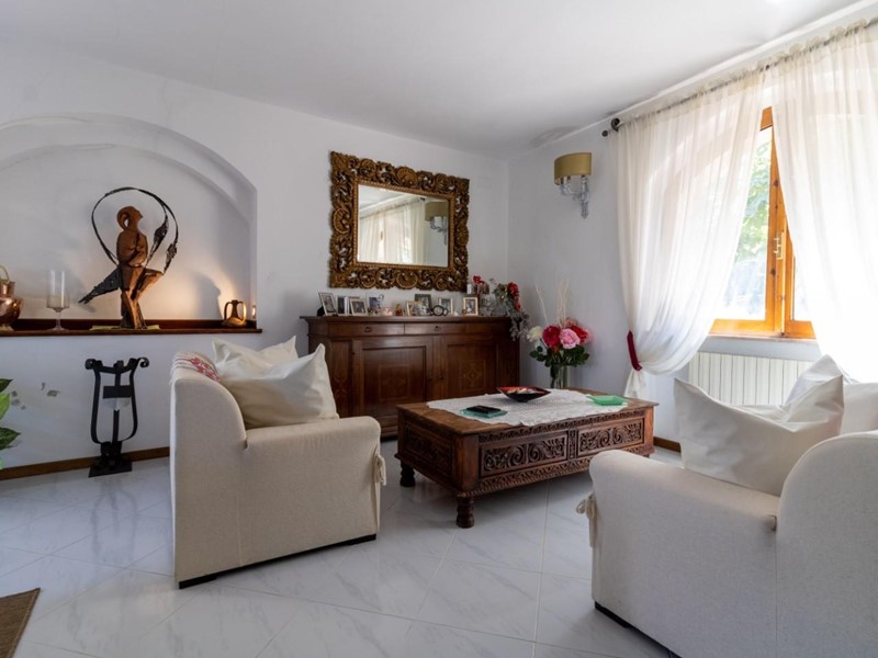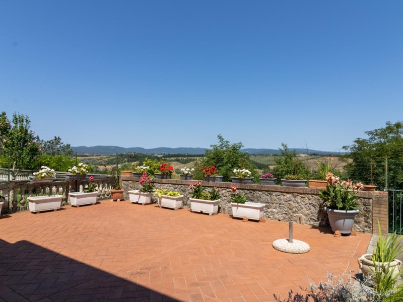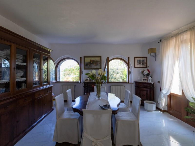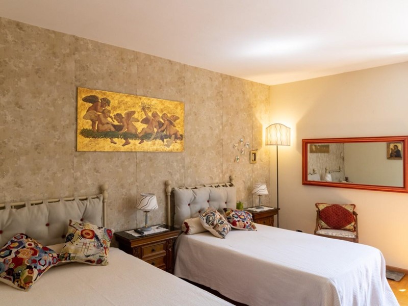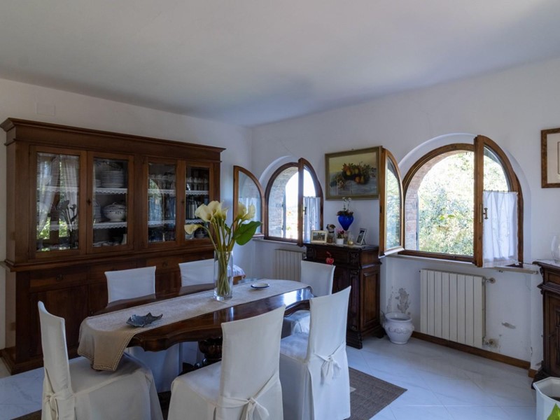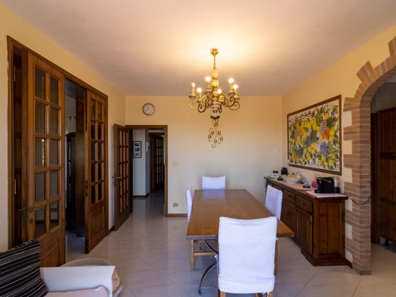 Una volta all'interno della proprietà, il bel resede pavimentato e l'ampio giardino privato fanno da cornice alla bellissima zona giorno ubicata al piano terreno dove troviamo uno studio, un comodo ripostiglio, la zona cucina ed il doppio salone padronale che ci accompagna sul terrazzo panoramico di circa 40 mq da dove possiamo ammirare la campagna e lo sfondo della città. Al piano superiore, al quale possiamo accedere attraverso una bella e comoda scala interna, troviamo la zona notte composta da 3 ampie camere matrimoniali, una camera mansardata e due bei bagni finestrati. Completa la proprietà un ampio garage di oltre 40 mq. Tutta la proprietà, nella quale si trova anche un pozzo per la raccolta dell'acqua piovana, risulta recintata da muretti in pietra.