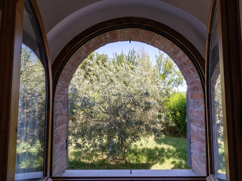 Monteroni d'Arbia, Mugnano - Vendesi splendida porzione di casolare con ingresso indipendente e giardino privato, ubicato nella prima periferia di Siena. Per arrivare all'immobile, che si sviluppa su due ampi livelli, dobbiamo percorrere una piccolo tratto di strada sterrata mantenuta benissimo che ci conduce direttamente al cancello elettrico privato. Grazie alla sua posizione panoramica, dalla casa abbiamo una vista mozzafiato sullo skyline di Siena e sulle colline circostanti.