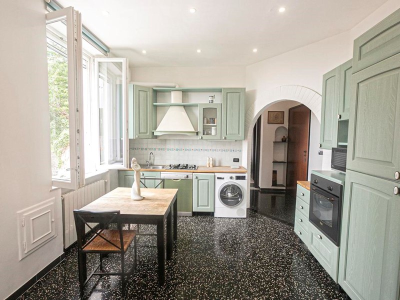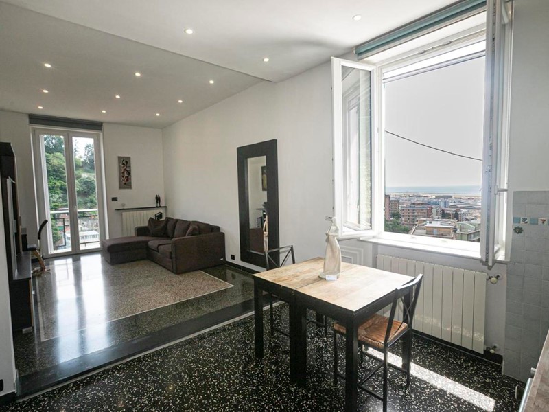 Ci troviamo nella primissima collina sestrese, a poca distanza dal centro (...circa 1,5 km da Via Sestri...) ma già in posizione sopraelevata e con quel tocco di vista mare tanto caro ai liguri. Stiamo parlando di Via Sant'Alberto, arteria stradale che si dirama dalla principale Via Merano e sale fino a raggiungere l'Eremo di Sant'Alberto appunto. In questo piacevole contesto proponiamo in vendita un particolare appartamento pronto da abitare e per il quale la proprietà considera, se confacente al gusto di chi verrà, di lasciare parte o tutta la mobilia già presente in loco. Il quadro è quello di un piccolo condominio formato da sole 6 unità abitative, tutte dotate di ingresso indipendente e raggiungibile esclusivamente in modo pedonale percorrendo una scalinata. Il nostro appartamento si trova al terzo ed ultimo piano, gode di doppia esposizione esterna mezzogiorno / levante e di una splendida vista che spazia dalla collina del monte Gazzo fino al mare. Internamente troviamo una casa particolarmente accogliente e moderna dove gli spazi sono stati sfruttati a pieno per esaltarne le peculiarità. Attraversando la porta di ingresso abbiamo immediatamente accesso all'ampia zona giorno open space formata dalle originarie cucina e soggiorno. Qui troviamo anche un grazioso balcone con un bell'affaccio. La zona notte è composta da una sola camera matrimoniale a fianco della quale troviamo un bel bagno con doccia. Completa la dotazione una spaziosa ed utilissima dispensa di generose dimensioni. Come accennato sopra l'abitazione si presenta in davvero ottime condizioni generali, le ultime due proprietà hanno provveduto ad aggiornarla ed abbellirla in modo costante. Vi invitiamo ad analizzare con attenzioni le immagini allegate all'annuncio e comunque vi lasciamo un breve elenco analitico delle principali caratteristiche: bagno e cucina rinnovati, porta d'ingresso blindata, infissi interni di ultima generazione, persiane in alluminio, caldaia a gas nuova, controsofittatura integrale con faretti. Per chi necessitasse di una stanza in più si potrebbe naturalmente ripristinare l'originaria disposizione dei vani che prevedeva appunto la presenza di due camere oltre cucina, bagno ed ingresso. In ultimo sottolineiamo la “bontà” della gestione economica di questa soluzione abitativa che è dotata di riscaldamento autonomo, basse spese di gestione ordinaria e piccola rendita catastale (utile ad abbattere i costi in sede notarile ed eventuale IMU).
