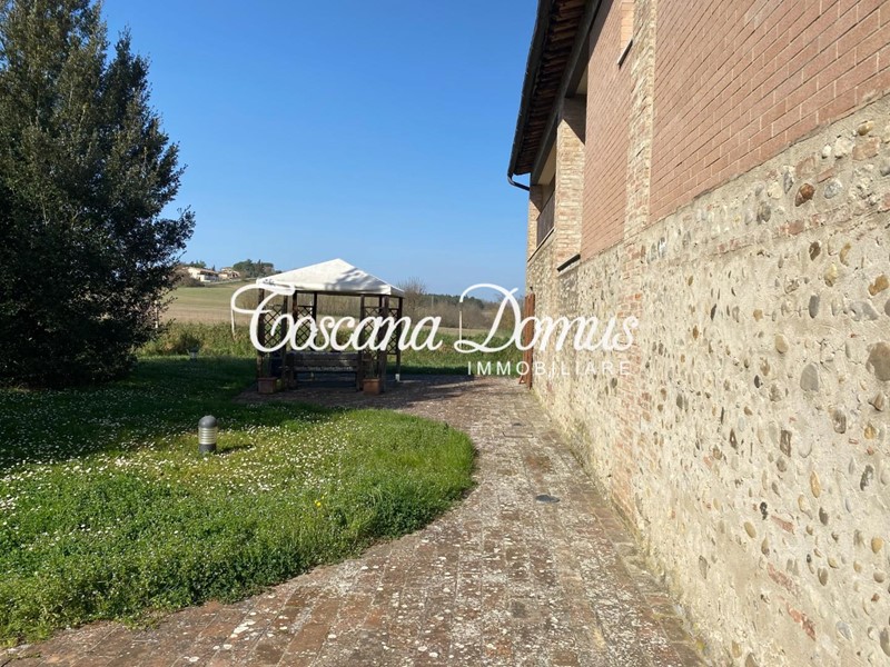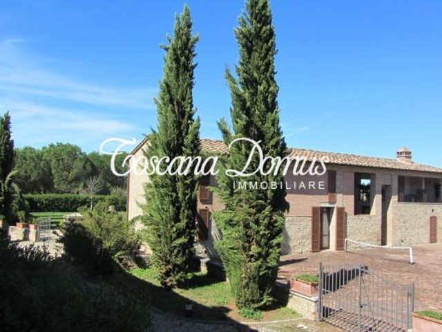 Comune di Siena posizione tranquilla e aperta nella campagna in vendita villa singola ristrutturata libera completamente su quattro lati con grande aia pavimentata e ampio giardino privato tutto recintato .