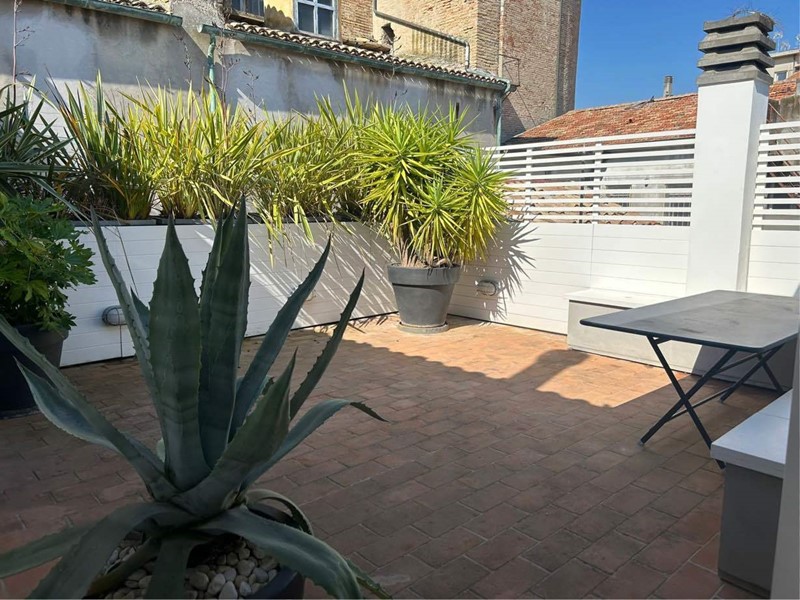 Senigallia_Centro Storico_Via Marchetti 25. Tra i tetti del centro storico di Senigallia, vendiamo al secondo ed ultimo piano, bellissimo attico mansardato di mq 130 con terrazzo al piano di mq 30 e ulteriore terrazzino a tasca di mq 10. Grande soggiorno open space, affacciato da un lato al bellissimo terrazzo abitabile e dall'altro al delizioso terrazzo a tasca, una camera da letto padronale con cabina armadio e bagno, seconda camera da letto, bagno zona giorno e vari ripostigli. Finemente ristrutturato pochi anni fà, l' appartmento si presenta in perfette condizioni ed è climatizzato, inoltre recentemente, sono state ristrutturate anche le facciate del piccolo condominio.
