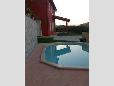In zona di campagna, villa singola di circa 130 mq disposta su due livelli composta al piano terra da ingresso/soggiorno con caminetto, cucina abitabile, bagno di servizio, ripostiglio, al piano primo da camera matrimoniale con cabina armadi, 2 camere singole, bagno, corredato esternamente da terreno di circa 1200 mq con PISCINA 7,50x4,50, aria condizionata, zanzariere e tende, classe energetica D, IPE 107,08 Kwh/mq anno. Per altre informazioni agenzia erre A immobiliare di Via Borgo Giannotti 651 Lucca