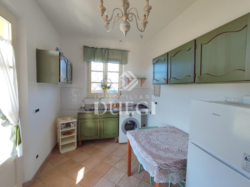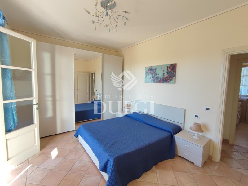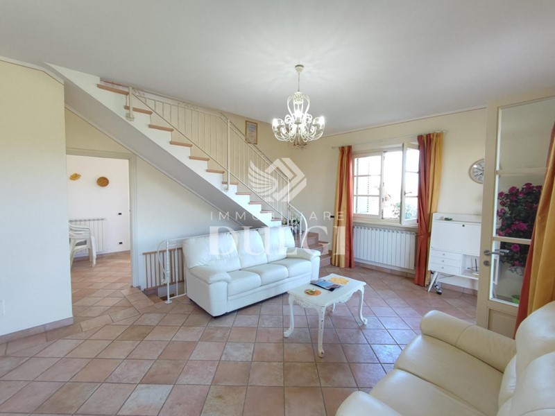 Al piano terra rialzato troviamo un ampio soggiorno, cucina abitabile separata, due camere matrimoniali e un bagno finestrato completo con doccia, il tutto è corredato da due terrazze una lato mare ed una lato monti che "abbracciano" ogni locale presente al piano e da bel un porticato coperto attrezzato con divanetti e tavolino.