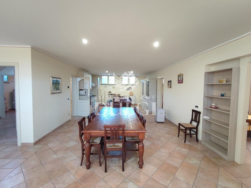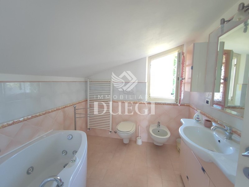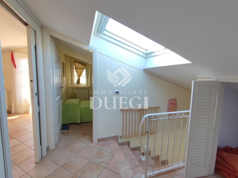 Infine al piano primo mansardato, ma dalle altezze generose, troviamo altri tre vani attualmente adibiti a camere, un bagno finestrato con vasca idromassaggio, due terrazzi uno lato mare e l'altro lato monte, e uno spazioso ripostiglio sottotetto.