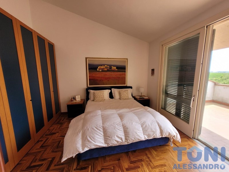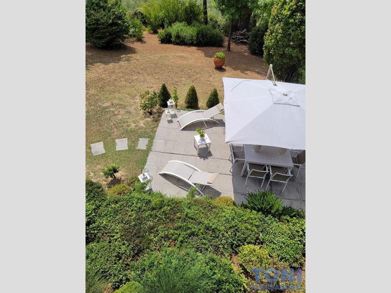 CERRETO GUIDI COLLINARE versante Empolese, villa angolare con ampio giardino, e panoramicissima. Ingresso nell'ampio salone, cucina pranzo separato, 2 camere con 2 bagni e guardaroba. Nel piano superiore ampia zona soggiorno, altre 2 camere, bagno, in parte mansardati e terrazza panoramica. Nel piano inferiore grande e luminosa taverna, tutta fuori terra, con garage e lavanderia. Finiture di pregio e moderne, parquet di olivo, marmi di carrara, cotto del palagio in taverna con camino e forno per la pizza. Contesto unico e prossimo all'abitato, dove la vista e il suono della natura è capace di inebriarti. C.e.: G. 690 mila €