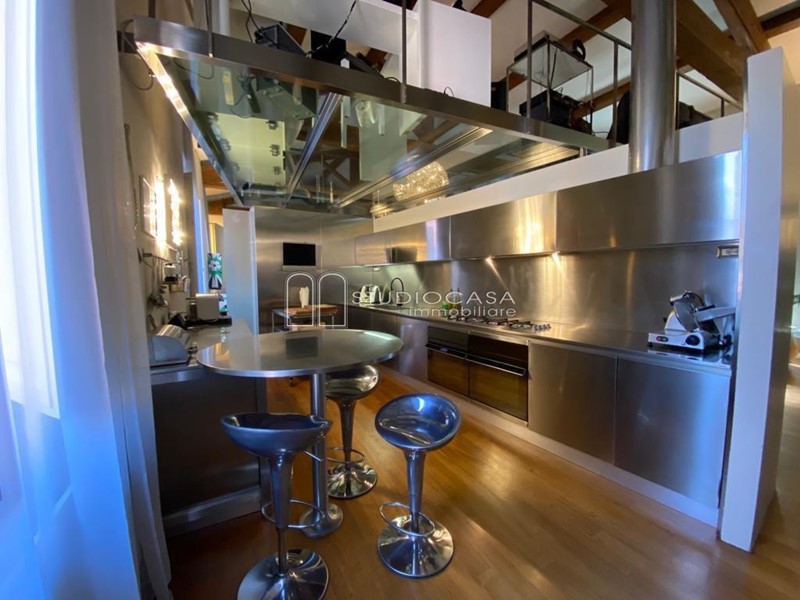 QUARTIERE SAN FRANCESCO: Stupendo ed unico appartamento tipo loft caratterizzato da fantastico soffitto con capriate e travi in legno del 1300 perfettamente mantenuti e valorizzati. Il contrasto tra l'antico e l'estremo moderno perfettamente armonizzati rendono meravigliosa questa dimora. 270 mq con salone di oltre 60 mq con doppio volume in acciaio e vetro, cucina arredata con elementi in acciaio, quattro camere matrimoniali e quattro bagni , locale armadi oltre a locale tecnico uso stireria o piccolo mono per collaboratori domestici al piano terreno. Posto bici o moto esclusivo in apposito locale condominiale . Ingresso indipendente luminosissimo.