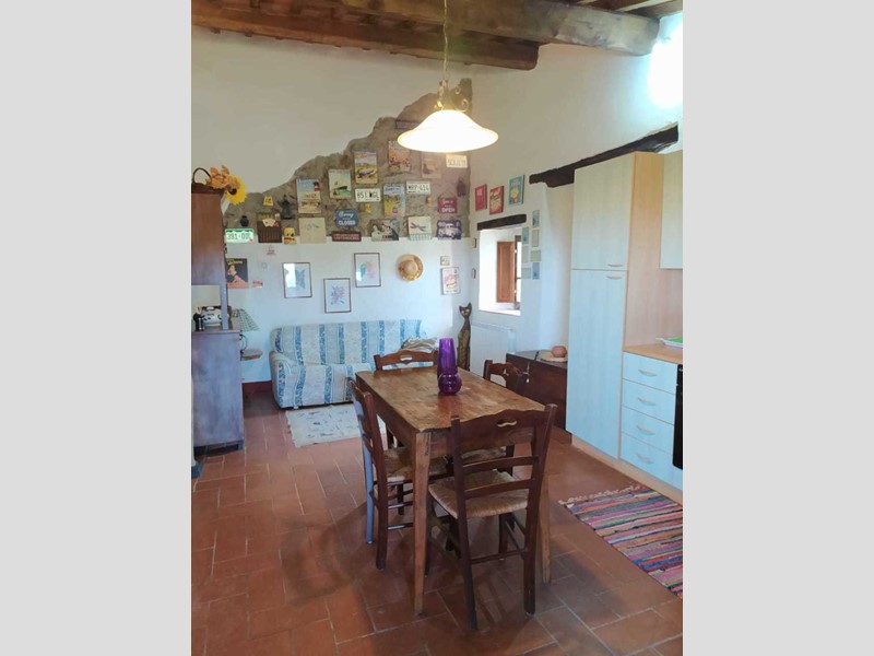 A circa 10 minuti dalla colonna del Grillo e 15 dalle Terme di Rapolano Appartamento disposto su due piani composto da ampio soggiorno con angolo/cottura, camera matrimoniale, cameretta e bagno al piano terra; soggiorno, camera matrimoniale e bagno. Annessa loggia, giardino privato. Completano la proprietà ampio giardino condominiale e piscina.
