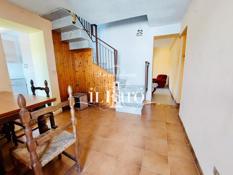Immobiliare il Faro propone la vendita di un appartamento sviluppato su più livelli al quale vi si accede da resede piastrellato. Al piano terra ci accoglie la sala da pranzo con scala a vista, collegata alla cucina indipendente e alla sala con camino. Salendo al piano primo si sviluppa un ampio disimpegno, che ci conduce alla prima camera matrimoniale con travi a vista e al bagno finestrato con doccia. Proseguendo al piano secondo troviamo la seconda camera matrimoniale e il disimpegno che, date le generose dimensioni, può essere sfruttato anche come cabina armadi. A corredo dell’abitazione si estende il terreno di proprietà di circa 3000 mq con uliveto e frutteto.