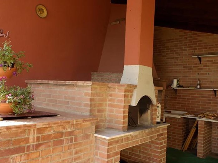 La piscina di 14x6m è inserita perfettamente nella morfologia del terreno collinare, si affaccia attraverso una terrazza ad un panorama incontaminato a vincolo paesaggistico dell’alta Vald’Era. Per metà della lunghezza la profondità dell’acqua è di circa 1m, per scendere fino a 2,60m per consentire i tuffi dal trampolino. Forno a legna, barbecue, tavoli, gazebo, percorsi e sedute, giochi per bambini, sono tutti servizi a disposizione degli ospiti. L’ingresso automatizzato consente agli ospiti di essere completamente indipendenti e sicuri nell’entrare e uscire dall’agriturismo.