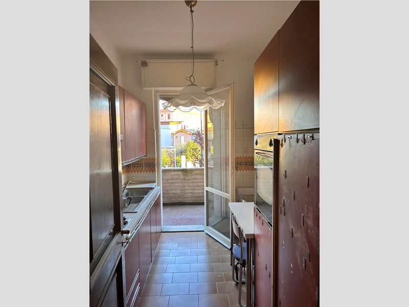 Ingresso Cucina separata con porta finestra che conduce al balcone, ampio soggiorno , disimpegno bagno con box doccia, camera matrimoniale e camera media