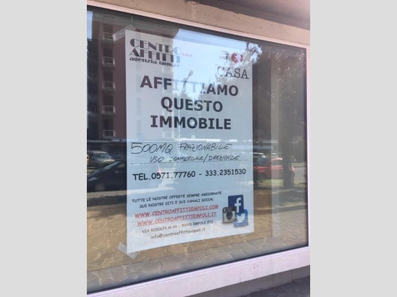 EMPOLI ZONA COMMERCIALE A DUE PASSI DAL CENTRO, GRANDE PASSAGGIO, SPLENDIDO FONDO COMMERCIALE / DIREZIONALE 500MQ. CON 10 VETRINE SU STRADA POSSIBILE FRAZIONAMENTO OTTIME CONDIZIONI.