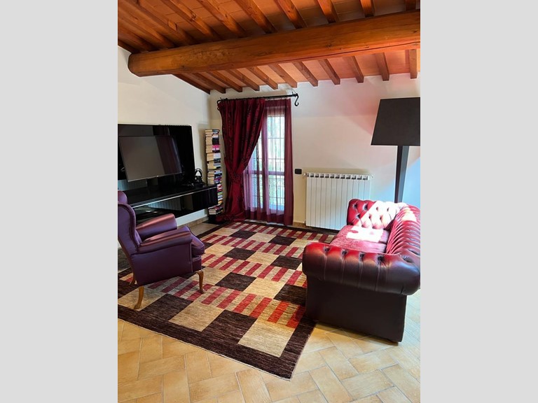 Pressi Rocca Carmignano. Bellissima porzione di colonica panoramica di sole due unità abitative completamente ristrutturata posta al piano rialzato avente accesso indipendente. L' immobile è libero su quattro lati, ha travi in legno a vista ed è composto da ingresso con sala con camino, cucina abitabile open space, ampio disimpegno con camera matrimoniale con guardaroba, camerina, doppi servizi di cui uno a servizio del reparto notte e uno a del reparto giorno, ripostiglio e piccolo balcone. Completano la proprietà due posti auto distaccati. L' immobile ha bellissime rifiniture, è termo-singolo, no condominio. L' indirizzo dell' immobile non corrisponde a quello reale. Per informazioni AGENZIA IMMOBILIARE CAFISSI SNC - Via Baccheretana n. 161 Seano - Carmignano (PO) - tel. 055/8706831 - 348/6763092 -333/7269943