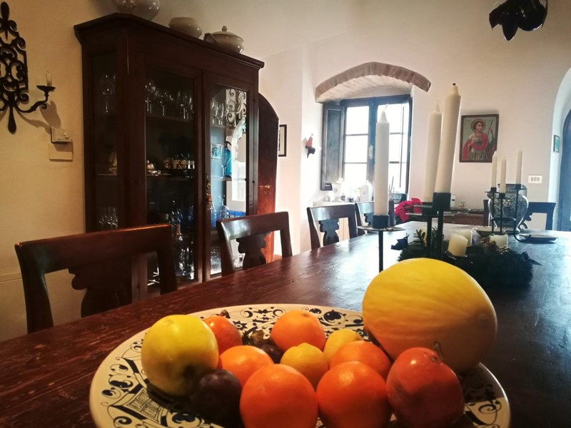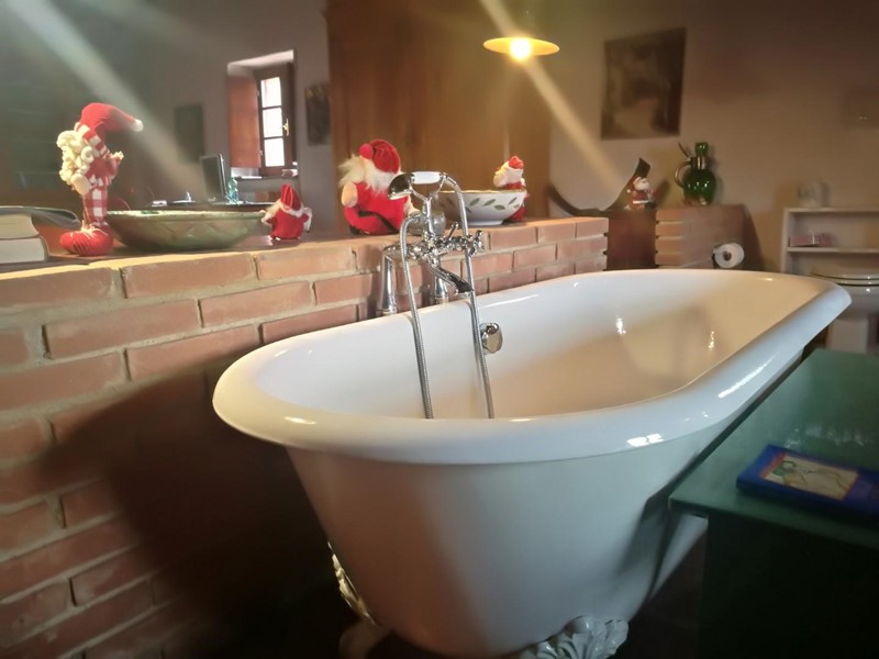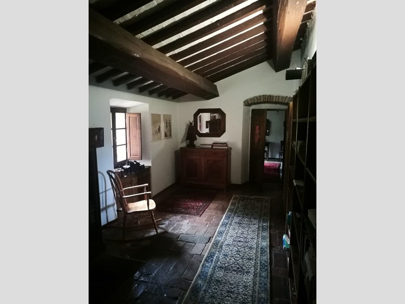 Dal salone di ingresso è possibile accedere alla torretta presente nel casale dov'è stato ricavato un bellissimo studio e due camere per gli ospiti. Soluzione bellissima e gode di un ottimo panorama. La strada consorziale passa proprio davanti la proprietà per rendere più agevole l’accesso al fabbricato. E' presente un ampio terreno privato di circa 2,5 m con possibilità di realizzare una piscina. Rif. 7011