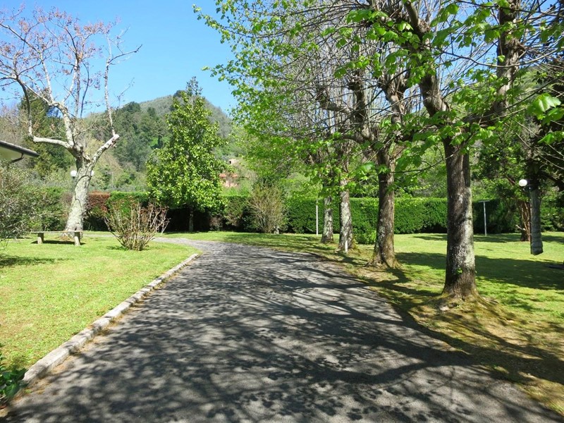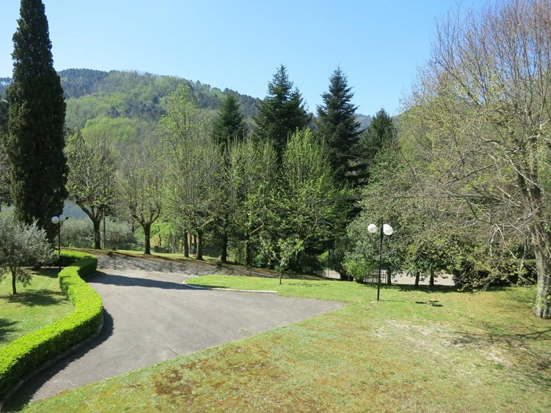 Completano la proprietà, il terreno di circa 4500 mq con un importante viale d'ingresso contornato da alberi di tiglio, che conduce al verdeggiante giardino, piantumato con roseti, rododendri e camelie.